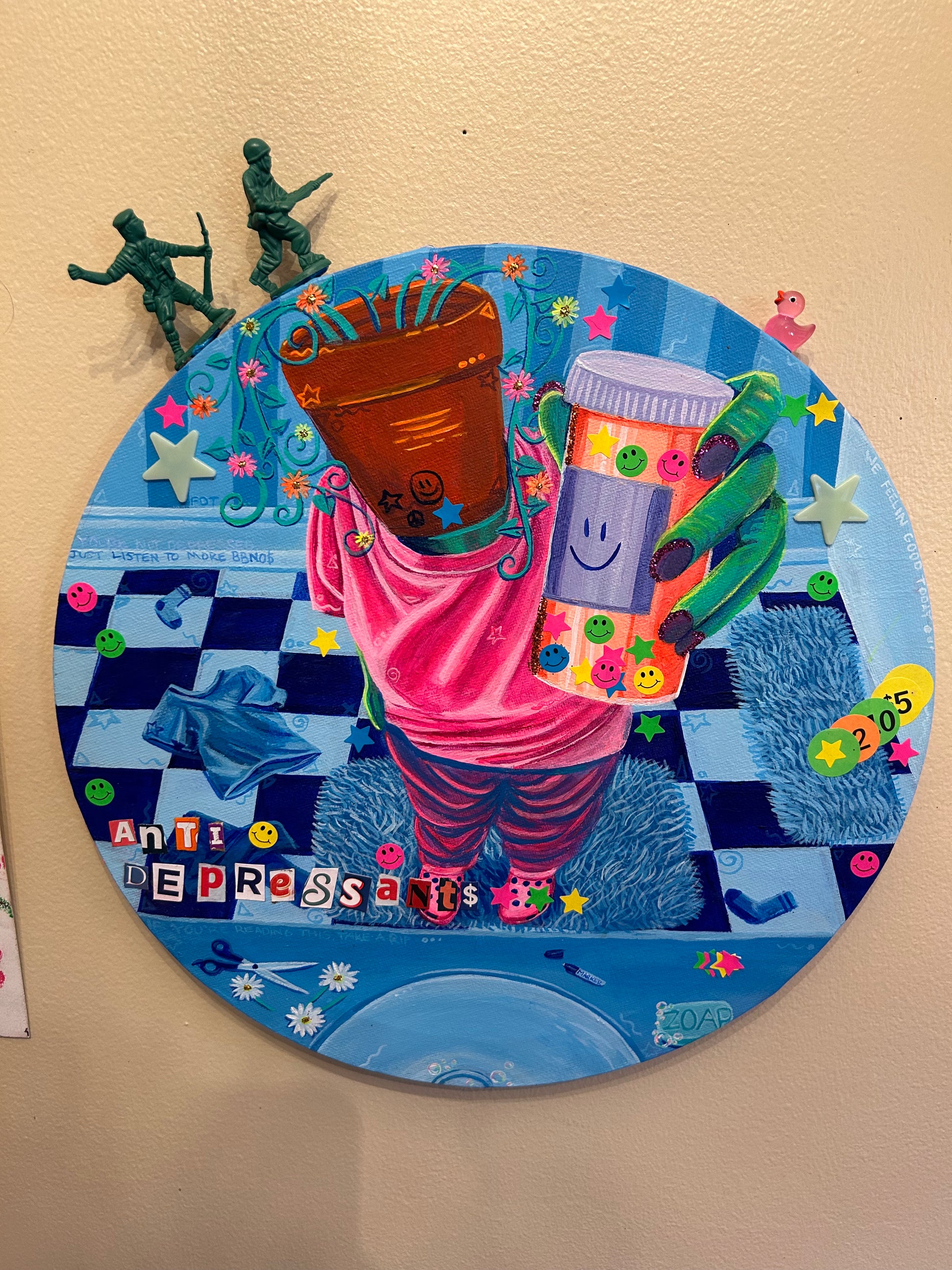 original 12” circle canvas inspired by bbno$ & his hatred of ai art ⭐️